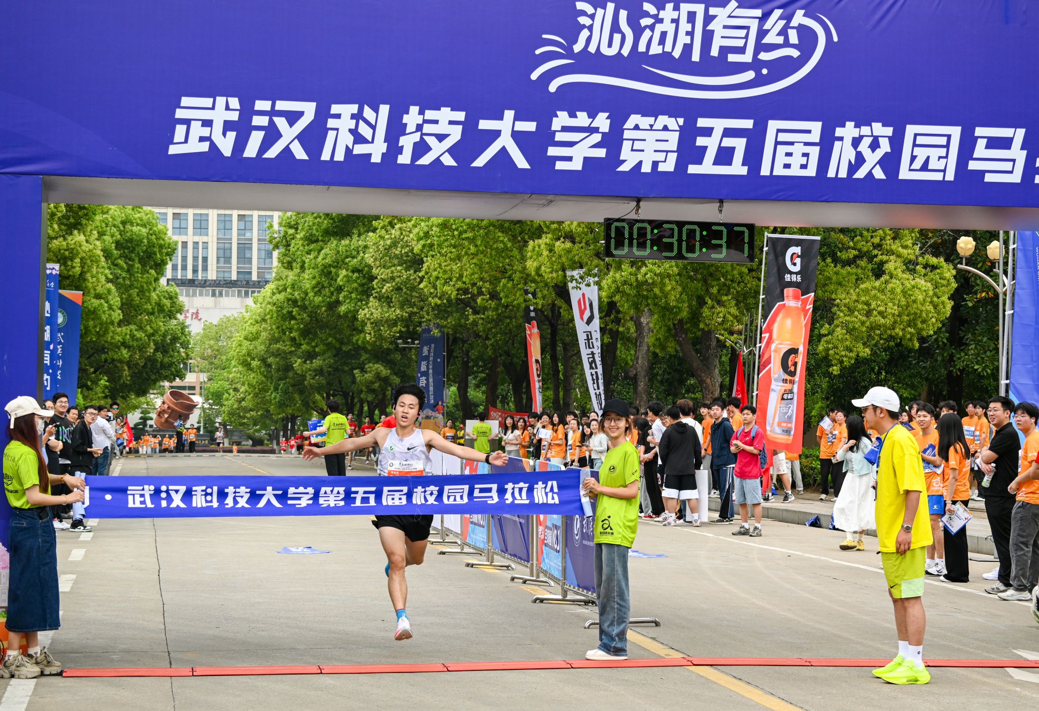 男子精英组的桂冠被海棠书屋 2023级学生吴润超以30分29秒的成绩摘得。吴润超去年在校园马拉松中以新生身份取得了最佳成绩,今年他再次加冕男子精英组冠军。他分享,他最初是希望通过长跑来减肥,进入大学后,更是加入了校田径队。“在田径队,我不仅成功减重,还结识了许多志同道合的朋友,运动为我带来了健康和快乐。”除了日常的训练计划,他还为自己设定了“每天至少绕校园跑五公里”的额外目标。