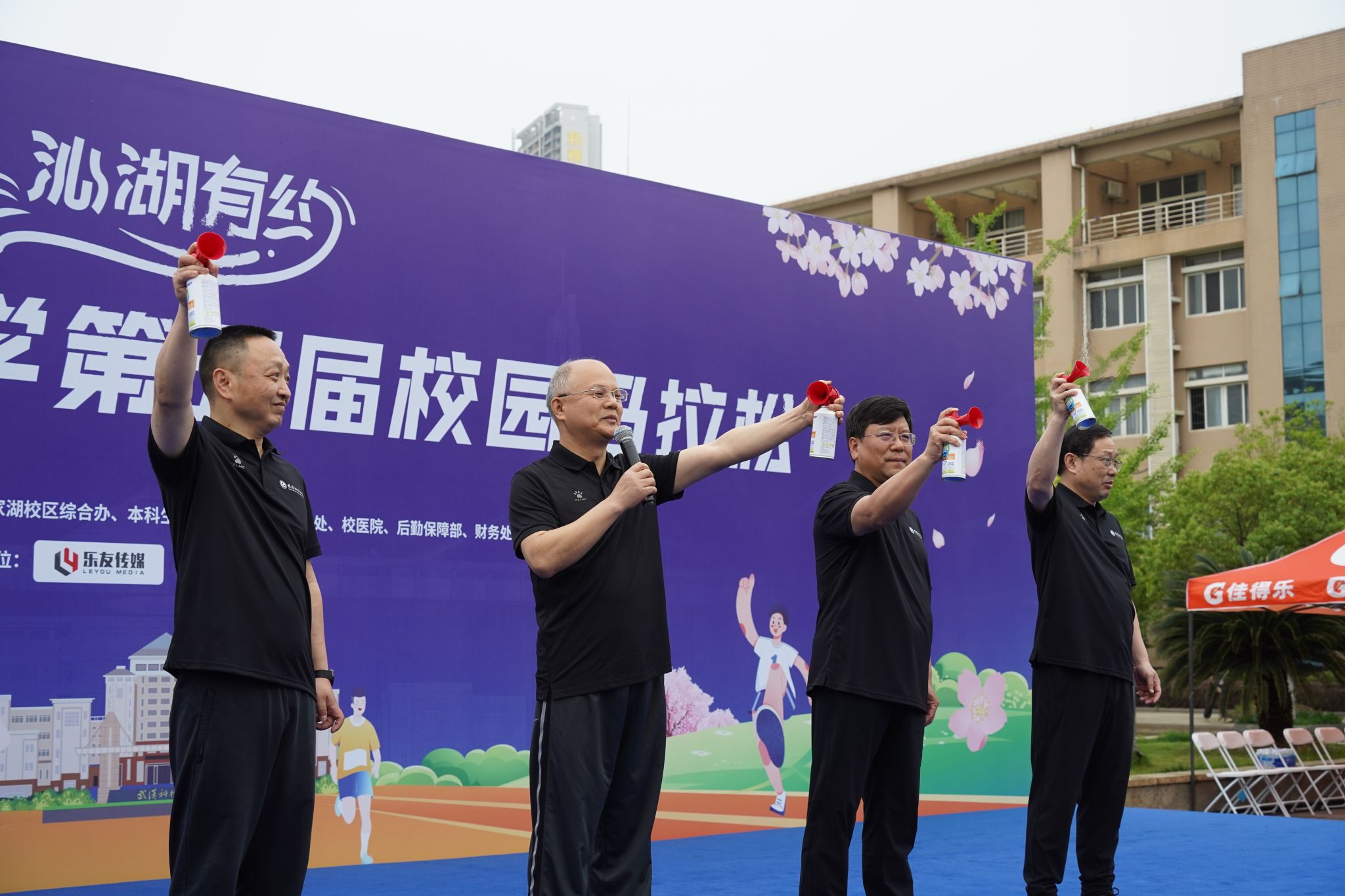 武科大网讯(见习记者周同江 记者刘靖瑶 摄影李周阳 孙正恒)4月19日,我校沁湖有约·第五届校园马拉松在黄家湖校区举行,校长倪红卫,党委副书记沈季伟,党委常委、副校长陈志刚,党委常委、组织部部长刘时新出席活动。