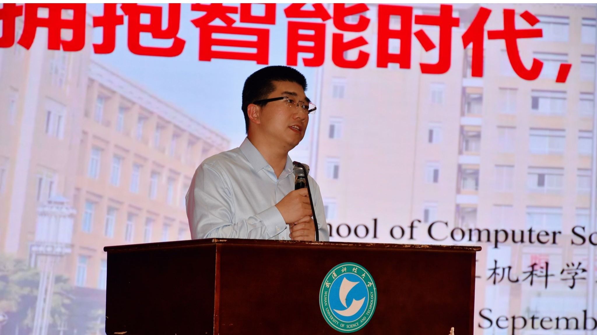 2025级新生“开学第一课”在沁湖礼堂举行。院长张凯身后巨幕上“拥抱智能时代,逐梦数字未来”的主题标语格外醒目,他以沉稳而富有激情的语调开启课程:“从二进制代码到元宇宙,从单机计算到万物互联,计算机学科正处第三次人工智能革命浪潮之巅。今天,我将带大家读懂学院‘成长密码’,共绘未来‘数字蓝图’。”
