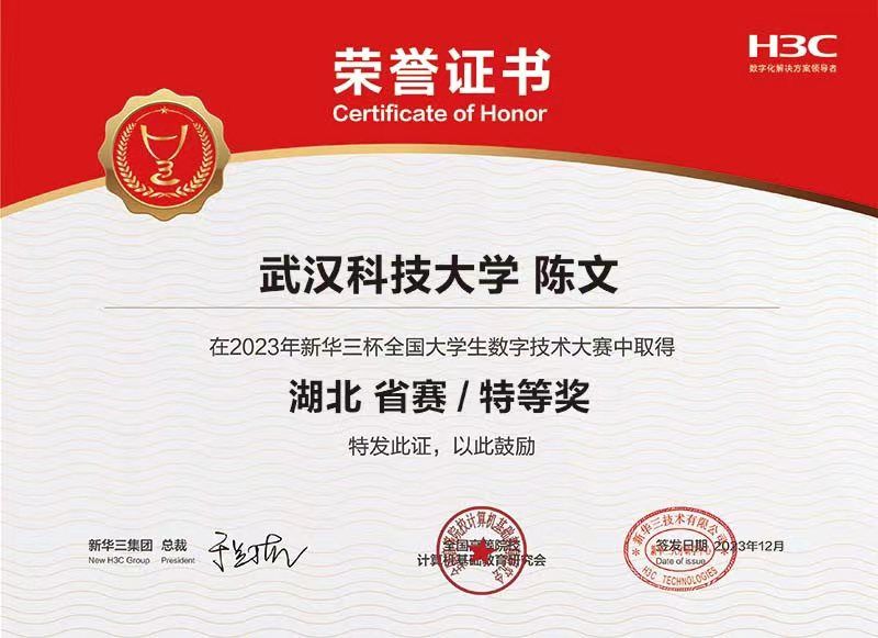 院新闻网讯(通讯员 苏鹏鹍)12月31日,第十三届“新华三杯”全国大学生数字技术大赛湖北省省赛获奖名单正式公布。海棠书屋