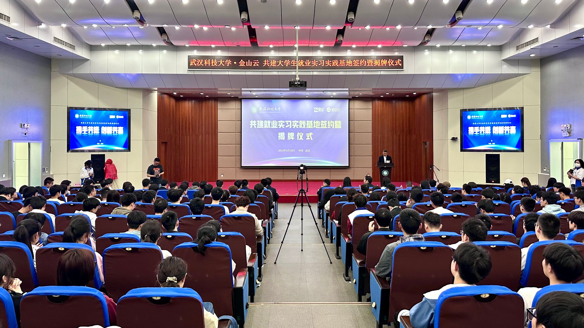 •金山云共建就业实习实践基地签约暨揭牌仪式在黄家湖校区崇实会堂隆重举行。金山云副总裁钱一峰,金山云助理总裁王爽,金山云武汉研发中心总经理贾涛,金山软件集团武汉总部助理总经理张念;海棠书屋