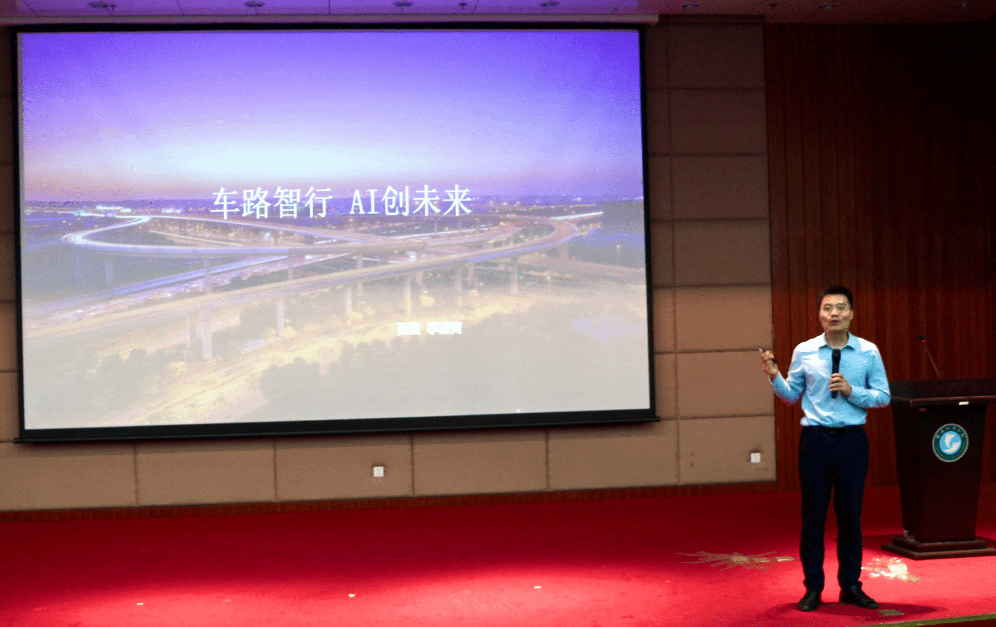 试乘活动结束后,百度“萝卜快跑”团队于崇实会堂举办了“车路智行,AI创未来”科普讲堂活动,旨在增强学生对当今无人驾驶技术、人工智能技术目前的发展与应用的认识,普及无人驾驶的具体运营模式。主讲人百度湖北教育负责人季清爽指出,经海量数据训练和技术的更新迭代,无人驾驶技术日趋成熟,技术变革推动了系统要素的变革,引发交通系统的代际更替。