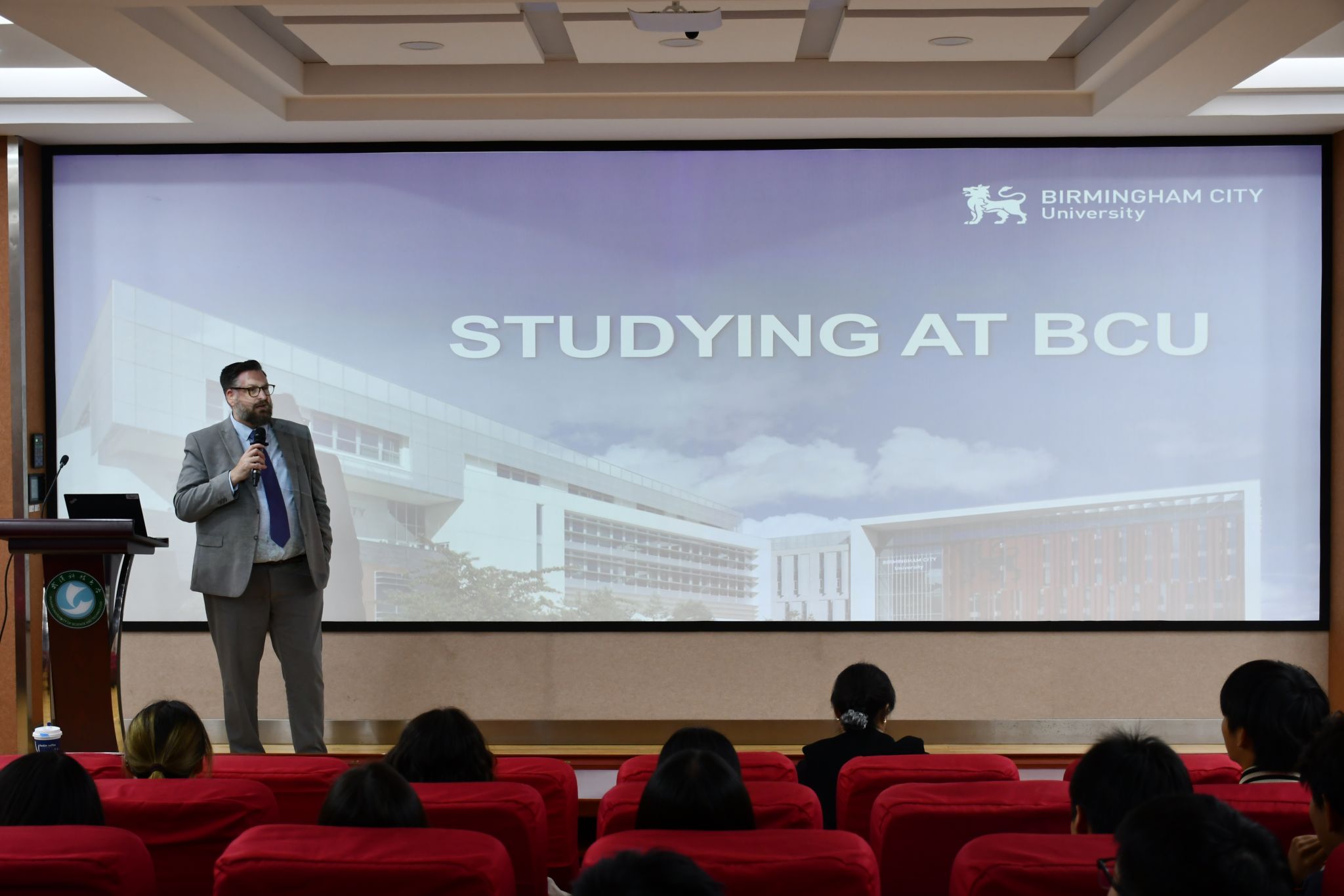 下午,伯明翰城市大学国际处David Waters副教授出席网络工程国际班2024级新生欢迎仪式。David Waters对各位新同学的到来表示热烈的欢迎,希望他们在多元文化与跨学科的环境中,融合两国教育体系的精华,充分利用国际合作的独特优势全面发展。海棠书屋