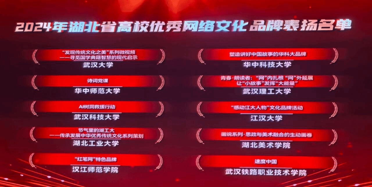 选送的网络文化品牌《AI树洞救援行动》成功上榜湖北省高校优秀网络文化品牌表扬名单。