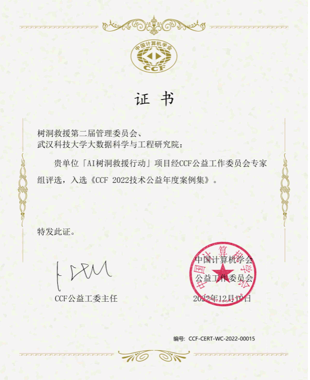学院《AI树洞救援行动》项目于2018年4月进行技术平台研发,2018年8月正式开展相关救援行动和志愿者招募,利用大数据和人工智能技术分析网络社交媒体上的信息,锁定高风险自杀人群并进行预警,组织近700名志愿者进行干预救援和持续陪伴关爱。6年来累计阻止或延缓6000余次自杀行为,活动得到中国新闻网、BBC等国内外超130家媒体宣传报道,中央电视台等超15家电视台拍摄了相关专题片,获得极客公园InnoAwards2021年度科技社会责任奖,入选中国计算机学会2022年度技术公益案例。
