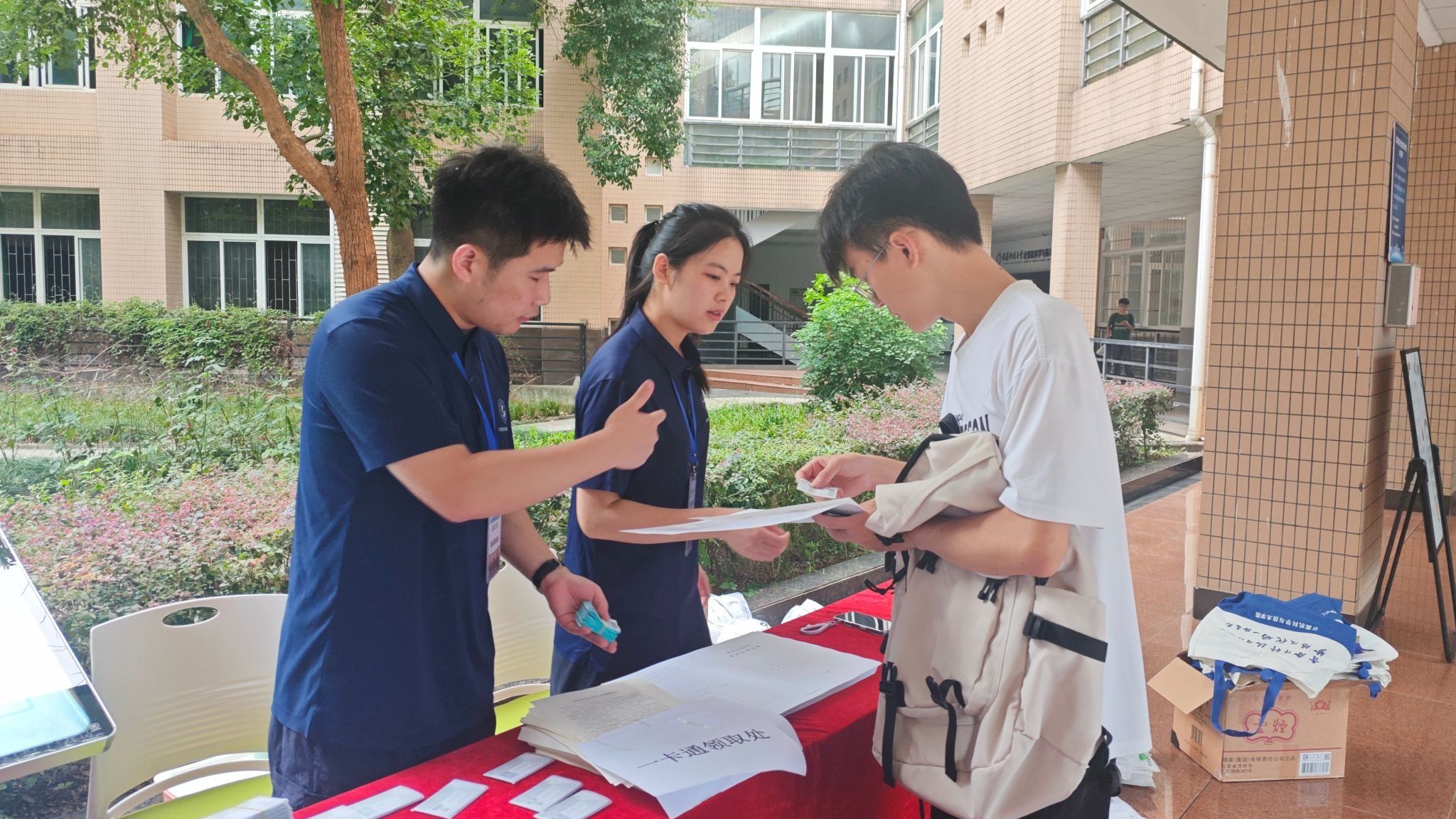 志愿者分工明确、热情细致,为新生提供全流程服务:依次发放一卡通、学生证、体检二维码、研究生登记表、研究生入学告知书等材料,还备有学院特制纪念品,含印有“WUST”的大号帆布袋、学院定制短袖以及校园风景的大号鼠标垫,寓意“开启崭新征程,留下青春印记”。除物资发放外,志愿者们还耐心指导新生完成线下注册、入学材料提交,帮助熟悉校园环境、适应研究生学习生活。2025级新生柳科峰表示:“迎新现场的安排贴心,学院礼物让我倍感温暖,更让我对即将开始的研究生生活充满期待。”志愿者代表吴晶则说:“能够为学弟学妹提供帮助,我倍感自豪;看到他们顺利报到,内心满是成就感。”研究生辅导员朱郭诚表示:“学院将营造温馨和谐向上学习环境,助力研究生成长成才。”
