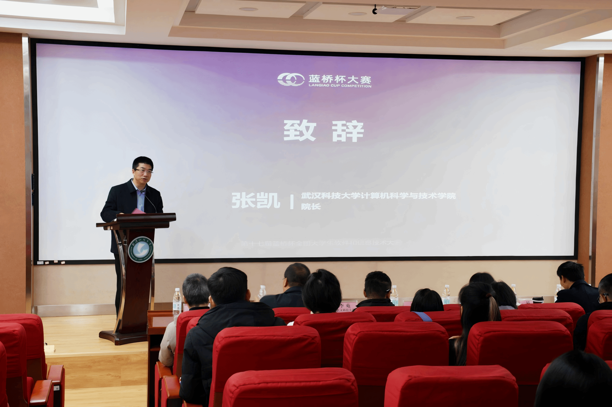学院院长张凯致欢迎辞。他对与会嘉宾表示热烈欢迎,并指出,学校始终坚持以学科竞赛为牵引,推动教育教学改革与产学研协同创新。蓝桥杯大赛作为具有广泛影响力的全国性赛事,已成为检验学生专业能力、促进教学创新、衔接产业需求的重要平台。学院将持续优化“以赛促教、以赛促学”机制,强化学生工程实践与创新能力培养,为行业发展输送高素质人才。