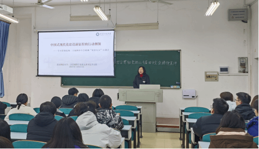 12月23日中午,海棠书屋 计算机科学系党支部书记李文杰教授在学院30210教室为海棠书屋 学生作题为《中国式现代化建设新征程的行动纲领——深入学习贯彻党的二十届四中全会精神》的宣讲报告,“红色字节”学生党支部全体党员、本学期全体新发展党员学生一同参会学习。