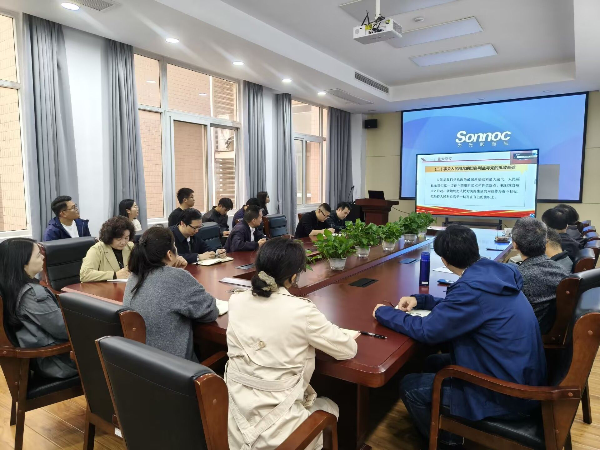 党委在黄家湖校区教三楼30217会议室召开学习教育专题会,集体收看全省共享课:习近平总书记关于树立和践行正确政绩观的重要论述。学院全体领导班子成员,各系(室、中心)党支部书记、主任、副主任,科研团队负责人、全体行政干部及学生党员骨干共同参加本次学习。