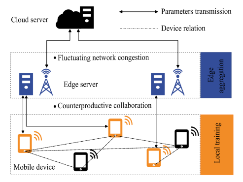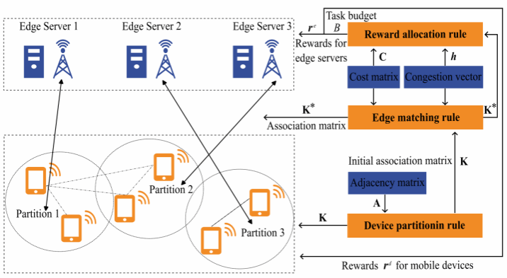 边缘网络中的联邦学习中需要设计高效的激励机制,以此来吸引足够多的用户参与参数更新,提高模型精度和泛化能力。现有的方法忽略了系统通讯效率和移动设备集群之间的相互作用,导致了网络拥塞以及数据分布不均衡。