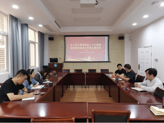 学习贯彻习近平新时代中国特色社会主义思想主题教育正如火如荼的进行。5月8日上午,学院召开党政联席会,学院党委书记在“第一议题”环节,作了题为“深入学习贯彻党的二十大精神 促进学院党建工作再上新台阶”的专题报告,全体院领导、中层干部参加了学习。
