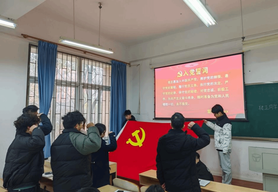 “红色字节”党支部召开支部大会,成功转正2名党员,接收3名预备党员,为党组织注入新鲜血液,进一步壮大了支部的党员队伍。会议由徐保伦同学主持,党支部指导老师胡威、洪运志以及全体学生党员、预备党员一同参加。
