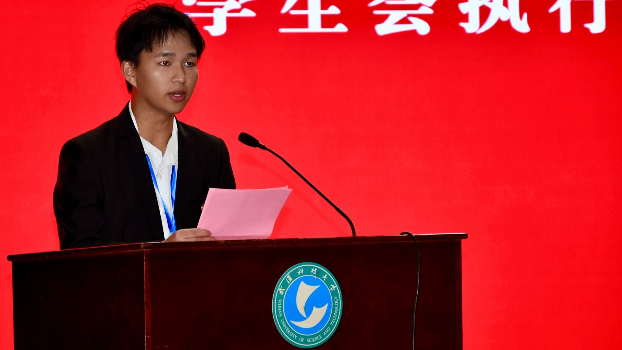 大会在庄严肃穆的国歌声中拉开序幕。随后,学院学生工作办公室主任刘广胜向参会人员宣读新一届各学生组织骨干名单。
