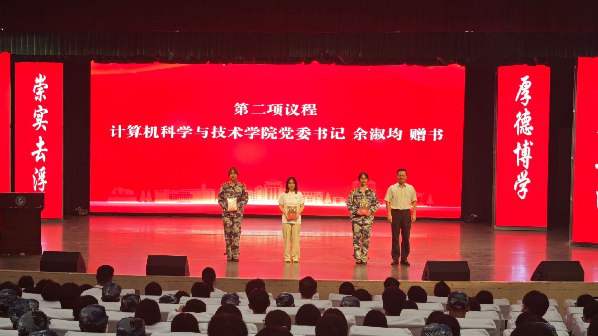 典礼在庄严的国歌声中拉开序幕。随后,学院党委书记余淑均为3名新生代表赠书,以“读万卷书,行万里路”寄语新生,勉励新生坚定理想信念、深耕专业知识、锤炼过硬本领,成长为担当国家发展与社会进步重任的栋梁之才。