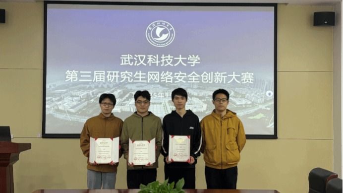 自赛事启动以来,大赛面向全校各学院广泛征集作品,吸引了众多研究生团队踊跃参与。经过前期严格的线上评审,共有3支优秀队伍脱颖而出,成功晋级决赛。决赛答辩现场气氛紧张而热烈。参赛选手通过清晰严谨的技术讲解、可视化的攻防演示,生动呈现了密码算法解析、攻击链分析、漏洞利用与防护策略等复杂内容。现场实时的渗透测试、告警日志展示及系统联动防护效果,引发了评委与观众的积极提问和高度关注。专家评委从创新性、技术难度、应用价值、安全性与规范性等多个维度对作品进行综合评审,在充分肯定同学们对前沿安全技术的敏锐洞察和对真实场景问题的深入思考的同时,也从系统稳定性、工程落地性及合规要求等方面提出了宝贵建议。经过激烈角逐,大赛最终评选出一、二、三等奖。颁奖环节中,获奖队伍与评委老师代表朱郭诚合影留念,共同记录下这一富有成果的精彩时刻。