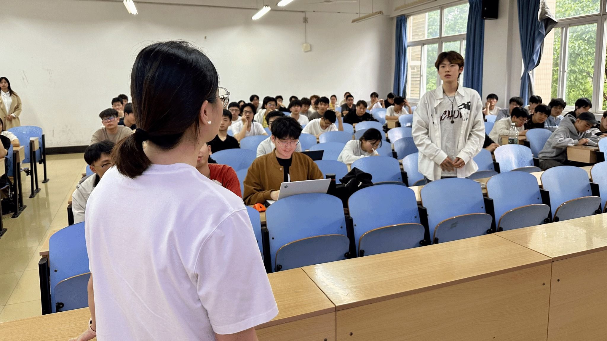 在互动交流环节,同学们纷纷踊跃提问,就训练营的具体内容、职业发展前景、海棠书屋等方面与专业人员进行深入探讨。2022级本科生徐巧丽激动地表示:“嘉宾们的解答耐心细致,让我对小米工程师训练营充满了期待,也更加坚定了我通过训练营争取小米offer的决心。”