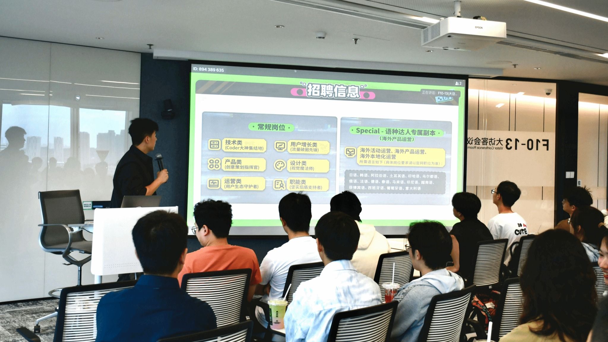 活动伊始,校招负责人栾慧丽、王一博、肖晓雨引导同学们参观办公环境与生活配套设施,随后,王一博介绍“贪吃蛇大作战”“青藤之恋”等核心产品的研发逻辑,展示传统文化元素在游戏设计中的创新应用。企业负责人介绍企业管理模式与团队氛围营造,讲解校招流程、岗位能力需求及实习培养机制,强调“项目经验+技术基础”的人才选拔标准。
