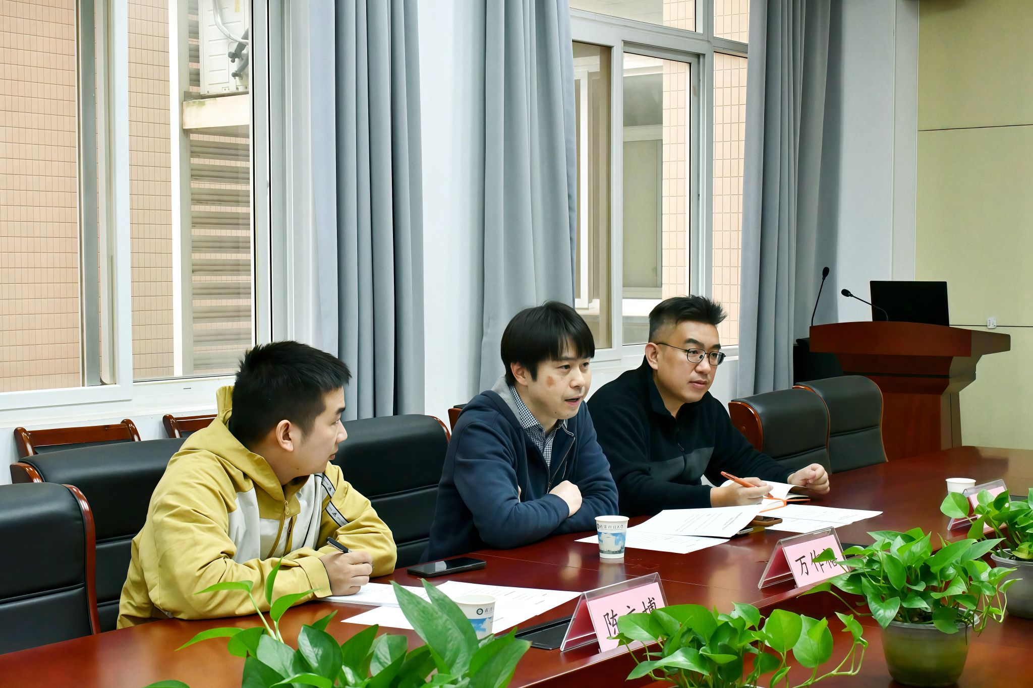 随后,双方就校企合作细节展开深度交流。王吉、陈文博结合企业业务场景,肯定学院在算法开发、软件工程等领域的人才培养质量,认为“学生专业能力与企业岗位需求匹配度高”;学院参会老师围绕实习基地建设、企业导师进课堂、联合项目实训等具体合作形式与企业方交换意见,就实践教学与企业需求结合、学生成长计划、实习实训促就业等细节达成初步共识,明确了后续工作推进方向。