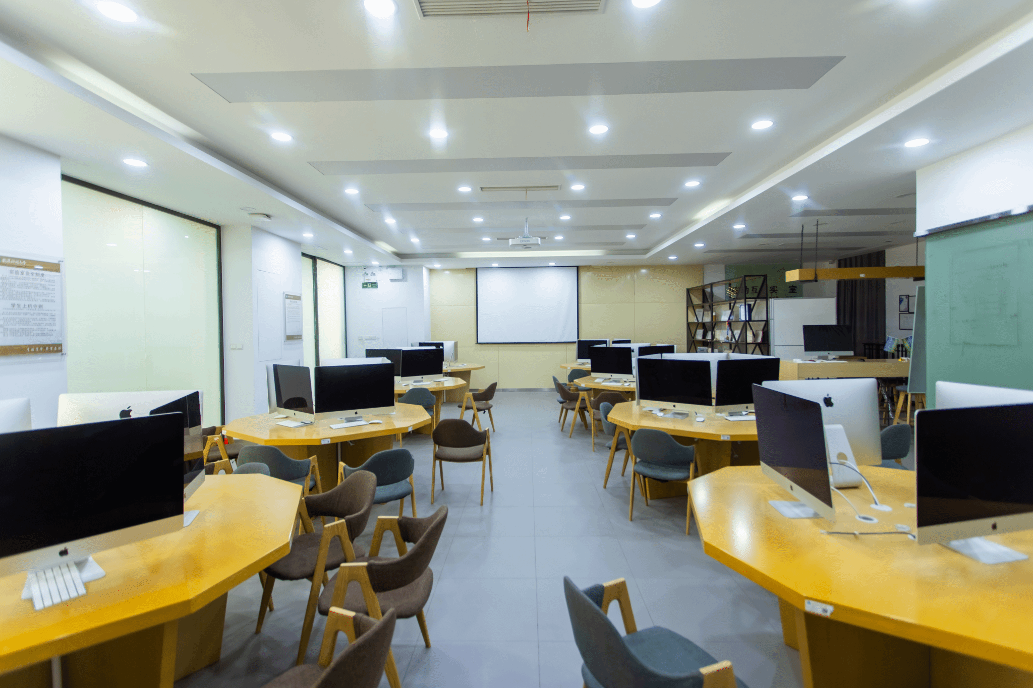 实验室设备主要包含:38台Mac一体机、1台投影仪。用来进行教学、开发、实验和创新。